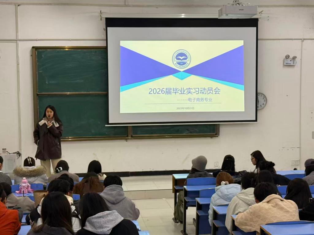 为贯彻落实高素质技能型人才培养目标,推动学生专业实践能力与社会需求接轨,2025年10月21日下午,软件学院在信科楼阶一教室召开了2026届专科电子商务专业毕业实习动员大会。本次动员会旨在明确实习任务、部署实习安排、强化实习管理,为即将步入实习岗位的学生提供全面指导。
