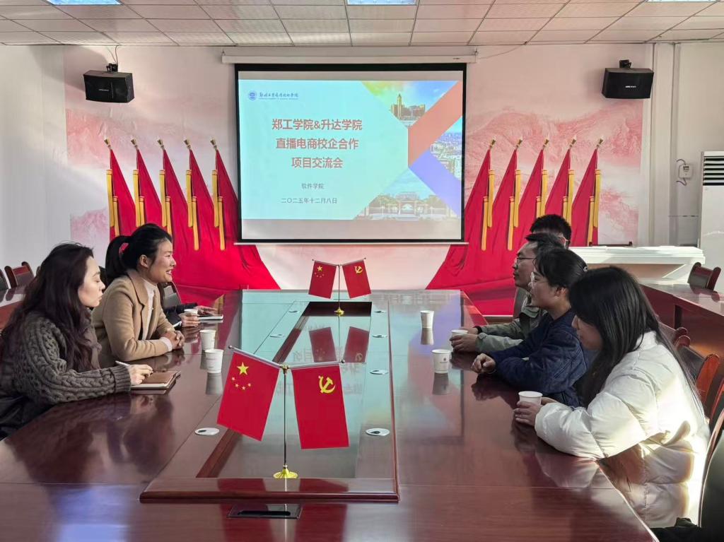 2025年12月8日上午10时30分,郑州升达经贸管理学院院长白朋飞一行莅临我院,就直播电商校企合作项目开展专题考察交流。我院副院长张莎、合作企业驻校导师蛋蛋全程陪同接待,交流座谈会在信科2-301会议室顺利举行。