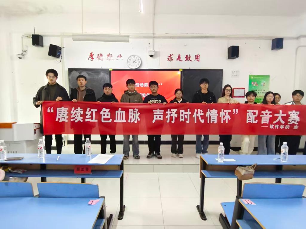 为了提升同学们的语言表达能力与声音塑造能力,进一步增强自身的语言素养,展现大学生自我风采和个人才艺。软件学院于2025年11月3日中午12:30,在东校区xk2-110成功举办“赓续红色血脉,声抒时代情怀”校园配音大赛。