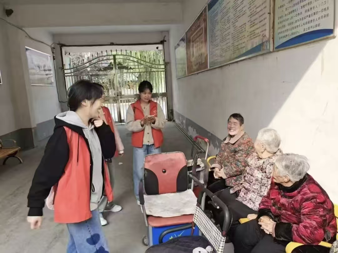 在老师的安排下我们分组走进老人的房间,陪老人们唠家常、听他们讲述过往的故事。我们认真倾听老人的心声,用耐心与关怀化解他们的孤独感。在敬老院的活动室,我们还为老人们带来了一场小型文艺汇演。年代感十足的歌曲、手语、小品等节目轮番上演,老人们看得津津有味,不时响起热烈的掌声和爽朗的笑声。部分老人还主动参与互动,现场氛围温馨而欢乐。同时,我们还为老人修剪指甲、测量血压,用实际行动关注他们的身体健康。天气晴好时,我们还陪伴老人在院内散步、晒太阳,组织简单的小游戏。老人们积极参与,脸上洋溢着幸福的笑容,在轻松的氛围中感受到了生活的乐趣。