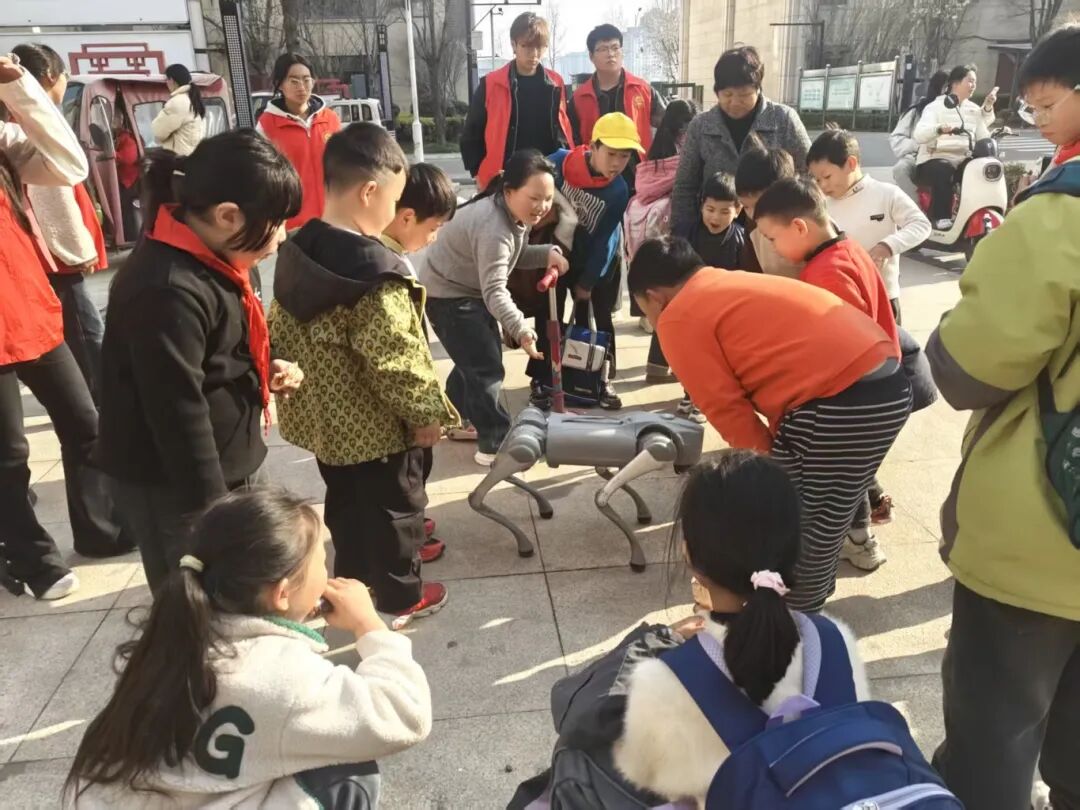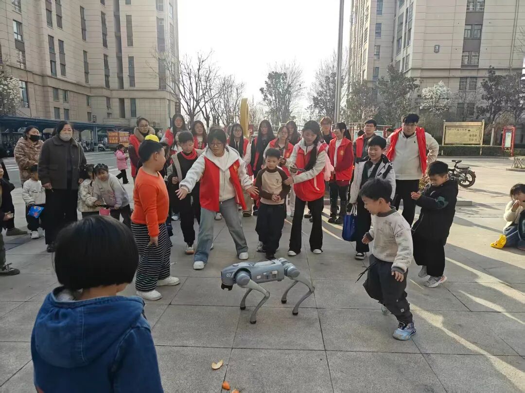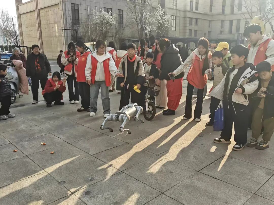活动现场,志愿者们向社区的孩子们展示了灵巧的四足机器狗,通过现场演示、互动体验等方式,生动讲解机器狗的结构原理、运动控制及在生活、救援等场景的应用。孩子们围在机器狗周围,好奇地观察它的行走、转向等动作,积极提问并参与互动,在近距离感受科技乐趣的同时,也对人工智能技术有了更直观的认识。志愿者们耐心解答孩子们的疑问,用通俗易懂的语言传递专业知识,点燃了孩子们探索科学的热情。